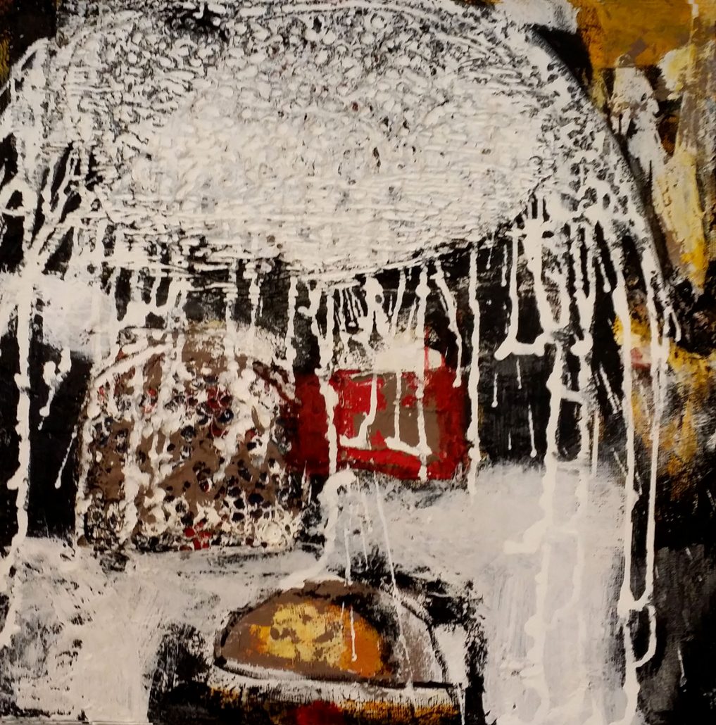 Escaping Into The Worlds We Create 36x36 inches - Acrylic, paper mache on canvas 2014